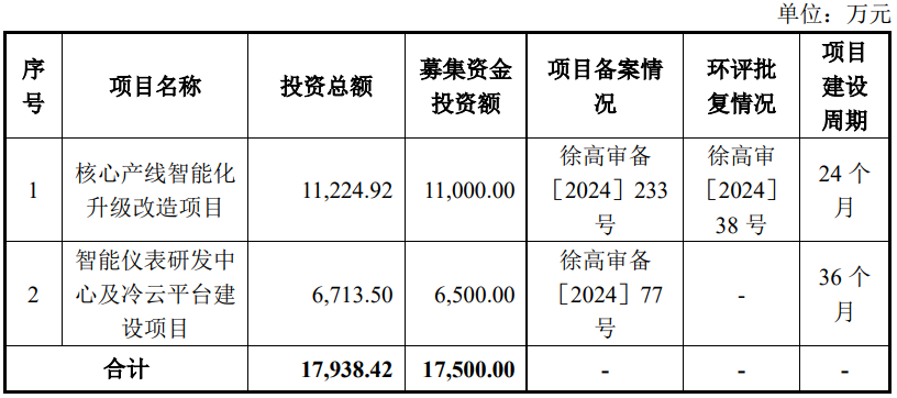 精创电气本次募集资金总额为17,496.60万元,扣除发行费用后的募集资金净额为14,498.60万元,比原计划少3,001.40万元。公司2025年11月14日披露的招股书显示,公司拟募集资金17,500.00万元,用于核心产线智能化升级改造项目、智能仪表研发中心及冷云平台建设项目。