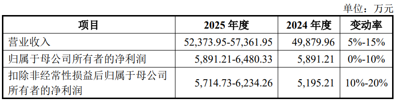 精创电气预计2025年营业收入为52,373.95万元至57,361.95万元,变动率5%-15%;归属于母公司所有者的净利润5,891.21万元至6,480.33万元,变动率0%-10%;扣除非经常性损益后归属于母公司所有者的净利润5,714.73万元至6,234.26万元,变动率10%-20%。