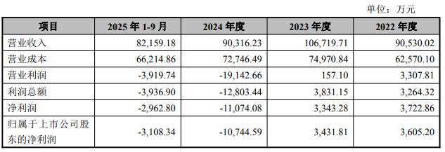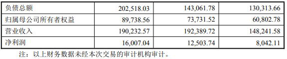 标的公司2023年度、2024年度、2025年前三季度营业收入分别为148,241.58万元、192,389.72万元、190,232.57万元,净利润分别为8,042.11万元、12,503.74万元、16,007.04万元。