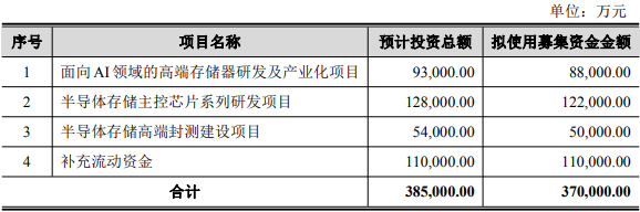 中国经济网北京12月3日讯 江波龙(301308.SZ)昨日晚间发布2025年度向特定对象发行A股股票预案。本次向特定对象发行股票拟募集资金总额不超过人民币370,000.00万元(含本数),扣除发行费用后的募集资金净额将用于以下项目:面向AI领域的高端存储器研发及产业化项目、半导体存储主控芯片系列研发项目、半导体存储高端封测建设项目、补充流动资金。