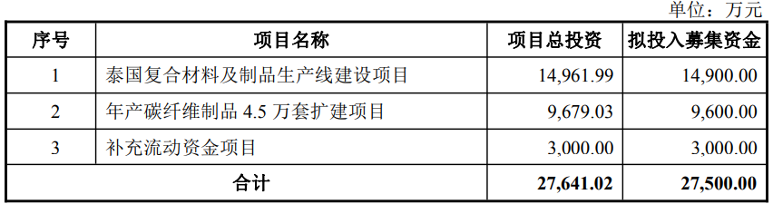 奇德新材10月29日披露了2025年度向特定对象发行A股股票预案(修订稿),公司本次向特定对象发行股票拟募集资金总额不超过27,500.00万元(含本数),扣除发行费用后的募集资金净额拟投资于泰国复合材料及制品生产线建设项目、年产碳纤维制品4.5万套扩建项目、补充流动资金项目。