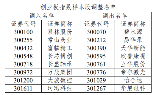 创业板指数样本股调整名单显示,帝尔激光(300776.SZ)为创业板指数样本股调出样本之一。
