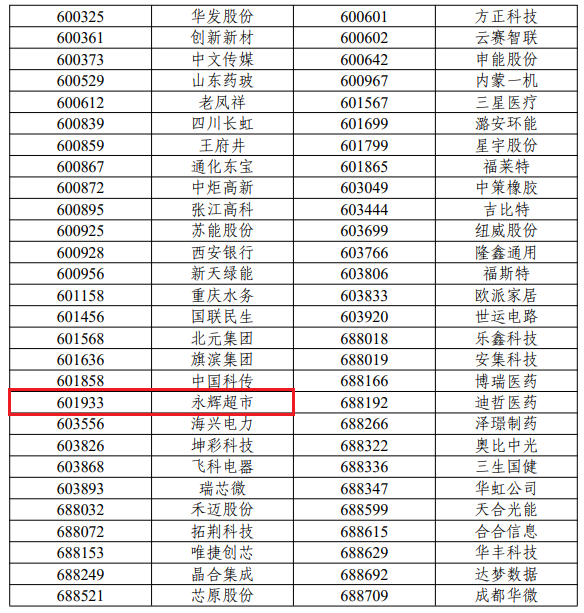 中证500指数样本调整名单显示,永辉超市(601933.SH)为中证500指数样本调出样本之一。