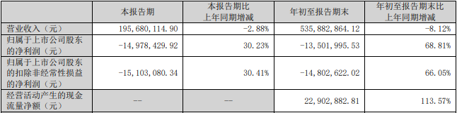 中国经济网北京12月10日讯 朗进科技(300594.SZ)日前发布的2025年三季度报告显示,今年前三季度,公司实现营业收入5.36亿元,同比减少8.12%;归属于上市公司股东的净利润-1350.20万元;归属于上市公司股东的扣除非经常性损益的净利润-1480.26万元;经营活动产生的现金流量净额2290.29万元,同比增长113.57%。