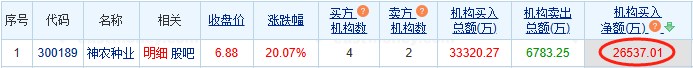 龙虎榜数据显示,买入神农种业金额最大的前五名中,有4家机构专用席位;卖出神农种业金额最大的前五名中,有2家机构专用席位。经统计,机构席位今日买入神农种业净额为26537.01万元。