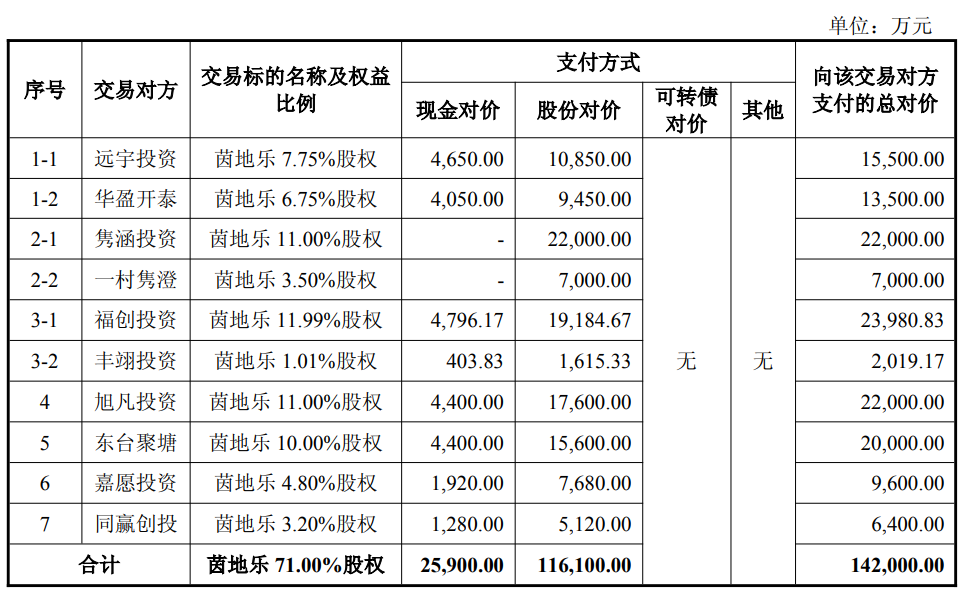 日播时尚2025年12月4日披露发行股份及支付现金购买资产并募集配套资金暨关联交易报告书(草案)(上会稿),公司拟通过发行股份及支付现金的方式购买四川茵地乐材料科技集团有限公司(简称“茵地乐”)71%股权,并向上市公司控股股东梁丰及其控制的上海阔元发行股份募集配套资金。