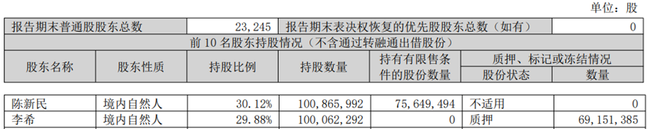 李希为公司的控股股东及实际控制人之一,持有公司股份94,041,612股,占公司总股本的28.08%,其一致行动人陈新民持有公司股份100,865,992股,占公司总股本的30.12%。李希计划在减持计划公告之日起15个交易日后的3个月内(即2026年01月08日至2026年04月07日)通过集中竞价交易、大宗交易方式减持公司股份合计不超过10,046,797股,即不超过公司总股本的3.00%,其中,拟以集中竞价方式减持公司股份不超过3,348,932股(占总股本比例1%),以大宗交易方式减持公司股份不超过6,697,865股(占总股本比例2%)。