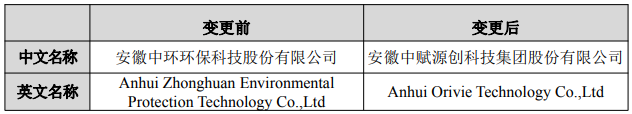 中环环保昨晚还披露了关于拟变更公司名称、证券简称及修订《公司章程》的公告。公告称,基于公司实际控制权已完成变更,在保持原有环保主营业务的同时,从提升上市公司持续盈利能力、优化资产质量的长远目标出发,未来公司拟通过处置部分非核心子公司、择机投资生物医药领域优质项目,培育新的利润增长点。综上,原公司名称安徽中环环保科技股份有限公司及证券简称“中环环保”已不能完全匹配公司业务和战略特性。为更全面地反映公司现状,公司拟变更公司名称及证券简称。本次更名不涉及主营业务重大调整,环保板块仍为公司核心业务之一,不存在损害公司及全体股东利益的情况。公司中文名称拟由“安徽中环环保科技股份有限公司”变更为“安徽中赋源创科技集团股份有限公司”,英文名称拟由“AnhuiZhonghuanEnvironmentalProtectionTechnologyCo.,Ltd”变更为“AnhuiOrivieTechnologyCo.,Ltd”,证券简称拟由“中环环保”变更为“中赋科技”,证券代码“300692”不变。