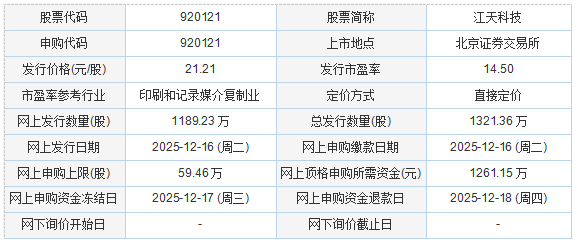 江天科技2025年12月12日披露的向不特定合格投资者公开发行股票并在北京证券交易所上市发行公告显示,若本次发行成功,预计公司募集资金总额28,026.12万元,扣除预计发行费用3,235.62万元(不含增值税)后,预计募集资金净额为24,790.50万元。