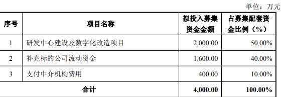公司发行募集资金总额为4.90亿元,募集资金净额为4.37亿元,较原拟募资少9258.17万元。据华菱线缆招股书,公司原拟募资5.30亿元,分别用于“航空航天、武器装备用特种线缆及组件技术升级改造”、“矿山及高端装备用特种柔性复合电缆技术升级改造”、“轨道交通用中低压电力及特种信号传输电缆技术升级改造”、“华菱线缆企业技术中心创新能力建设项目”、“补充流动资金”。