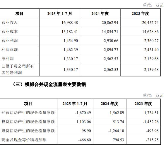标的模拟合并利润表主要数据及模拟合并现金流量表主要数据如下。