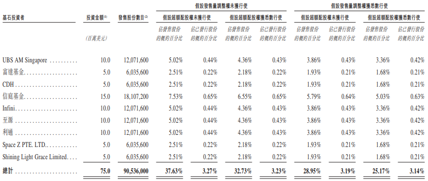 HASHKEY HLDGS的基石投资者为UBS AM Singapore、富达基金、CDH、信庭基金、Infini、至源、利通、Space Z PTE. LTD.、Shining Light Grace Limited。