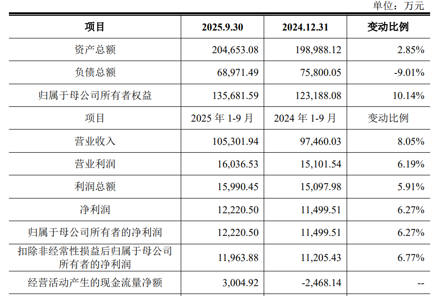 2025年1-9月,元创股份的营业收入为105,301.94万元,同比增长8.05%;净利润/归属于母公司所有者的净利润12,220.50万元,同比增长6.27%;扣除非经常性损益后归属于母公司所有者的净利润11,963.88万元,同比增长6.77%;经营活动产生的现金流量净额3,004.92万元,上年同期为-2,468.14万元。