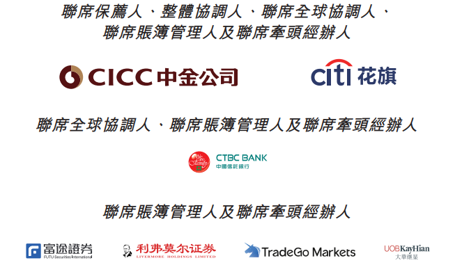明基医院的联席保荐人、整体协调人、联席全球协调人、联席账簿管理人及联席牵头经办人为中国国际金融香港证券有限公司、花旗环球金融亚洲有限公司,联席全球协调人、联席账簿管理人及联席牵头经办人为中国信托商业银行股份有限公司,联席账簿管理人及联席牵头经办人为富途证券国际(香港)有限公司、利弗莫尔证券有限公司、TradeGo Markets Limited、大华继显(香港)有限公司。
