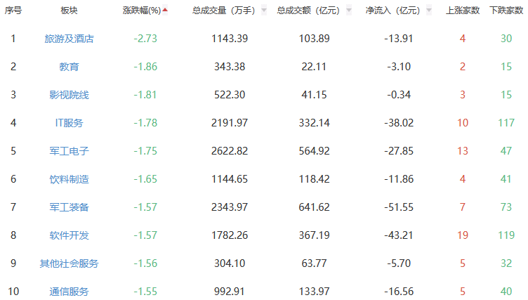 行业板块方面,电池、能源金属、电子化学品等板块涨幅居前,旅游及酒店、教育、影视院线等板块跌幅居前。