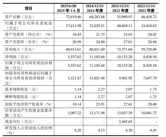 2022年、2023年、2024年、2025年1-6月,天溯计量实现营业收入分别为59,720.09万元、72,571.04万元、80,011.69万元、40,913.61万元,归属于母公司所有者的净利润分别为8,438.54万元、10,125.20万元、11,105.68万元、5,557.62万元,扣除非经常性损益后归属于母公司所有者的净利润分别为7,697.79万元、9,901.95万元、11,021.48万元、5,521.87万元。