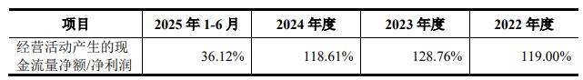 2022年、2023年、2024年、2025年1-6月,天溯计量销售商品、提供劳务收到的现金分别为57,469.13万元、72,292.99万元、78,220.23万元、35,242.31万元,占各期营业总收入比重分别为96.23%、99.62%、97.76%、86.14%;经营活动产生的现金流量净额分别为10,041.72万元、13,037.30万元、13,171.98万元、2,007.22万元,占各期净利润比重分别为119.00%、128.76%、118.61%、36.12%。