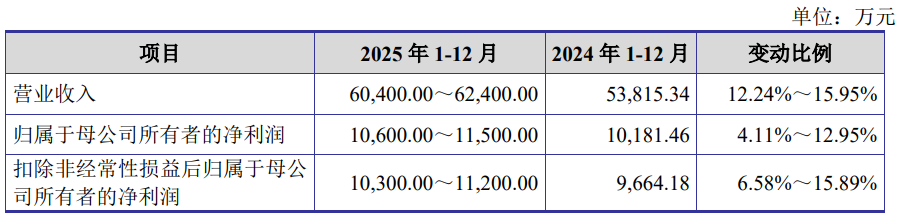 2025年1-12月,江天科技预计实现营业收入60,400.00万元至62,400.00万元,同比增长12.24%至15.95%;归属于母公司所有者的净利润10,600.00万元至11,500.00万元,同比增长4.11%至12.95%;扣除非经常性损益后归属于母公司所有者的净利润10,300.00万元至11,200.00万元,同比增长6.58%至15.89%。