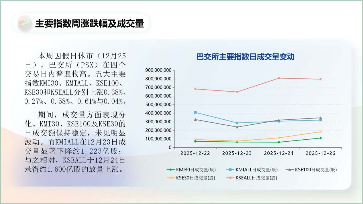 5、据巴基斯坦媒体《论坛快报》12月24日报道,巴铁路部长阿巴西(Muhammad Hanif Abbasi)表示,该国铁路部门在2025年7月至12月收入预计达到500亿卢比,因此在2025至2026财年(2025年7月至2026年6月)有望实现1000亿卢比的收入目标。阿巴西表示,铁路部门近年来一直面临较大财政压力,由于采取了有针对性的行政及运营措施,目前正朝着财务稳定的方向发展。