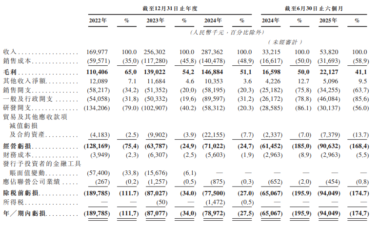 2022年至2024年及2025年上半年,公司营业收入分别达到1.70亿元、2.56亿元、2.87亿元和0.54亿元;期内净亏损分别为1.90亿元、0.87亿元、0.79亿元和0.94亿元。