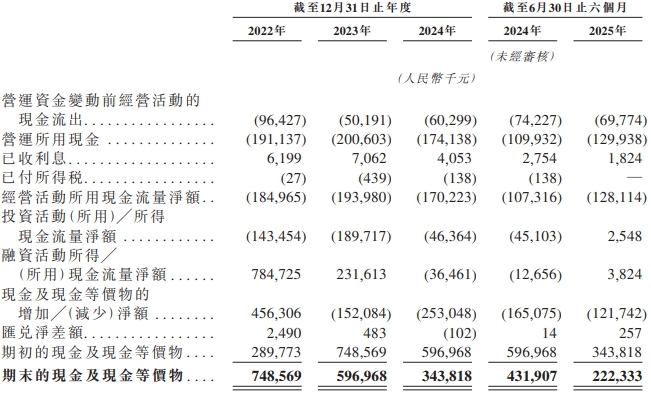 迅策于2022年、2023年、2024年以及截至2024年及2025年6月30日止六个月的经营活动所用现金净额分别为人民币185.0百万元、人民币194.0百万元、人民币170.2百万元、人民币107.3百万元及人民币128.1百万元。