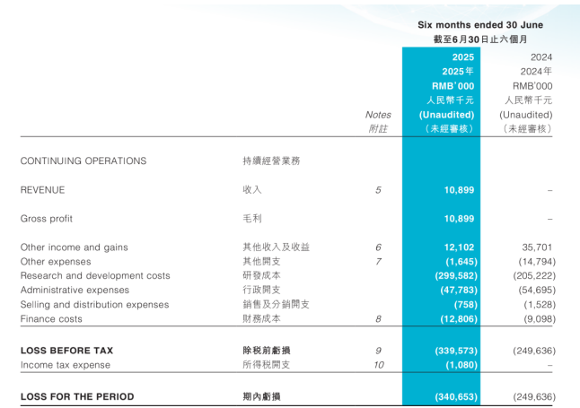 在核心管线推进过程中,公司研发投入持续加码,2025年上半年3.00亿元的研发开支较上年同期显著增长46.0%,但核心管线进展缓慢、部分项目终止的现状,导致研发投入难以快速转化为营收,不仅无法缓解亏损压力,反而进一步加剧了业绩负担。