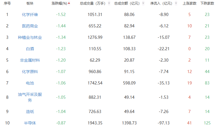 A股市场板块涨跌幅排行