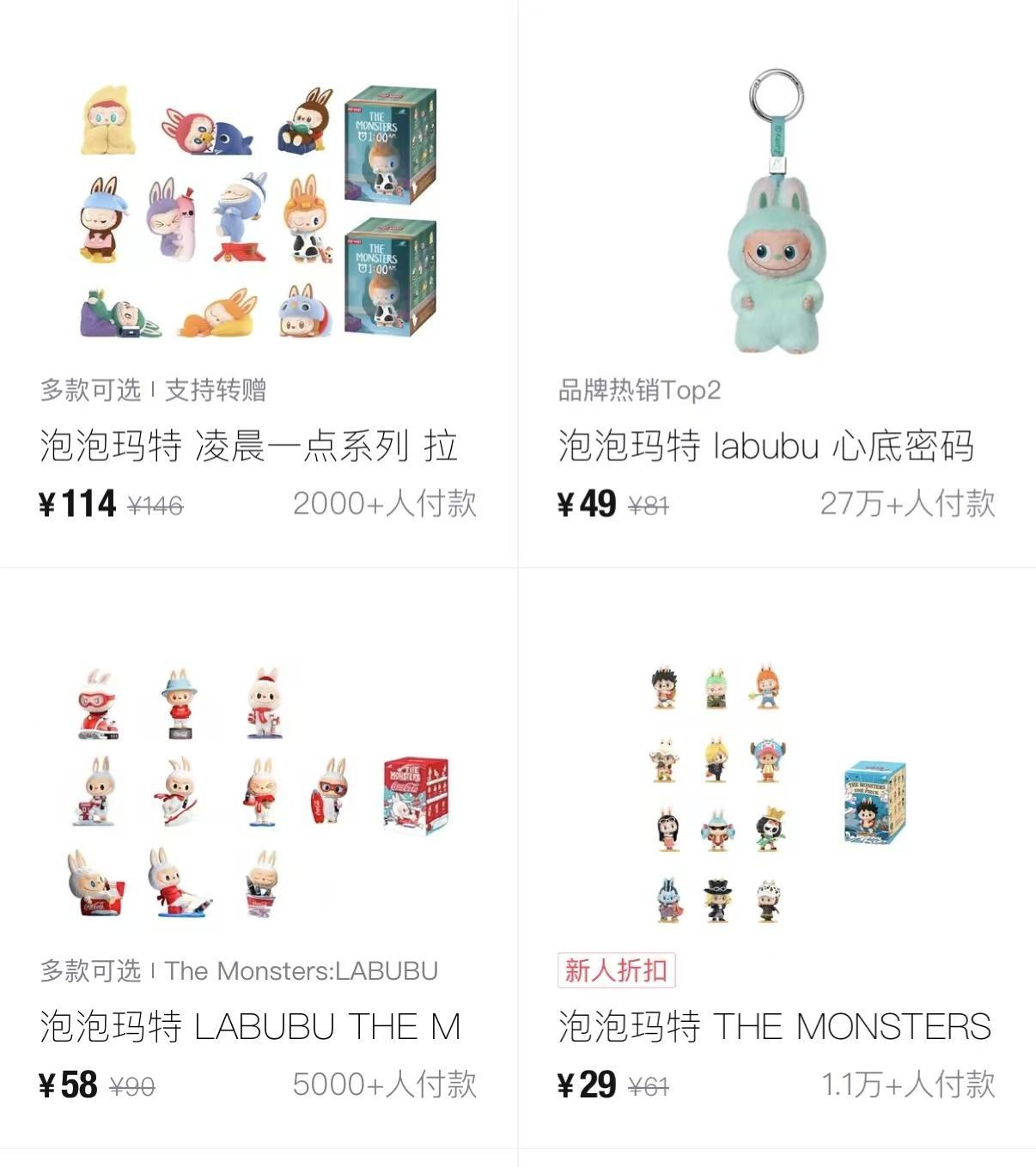 而近期,在闲鱼、得物等二手交易平台上,LABUBU相关商品的上架数量呈现出明显增多的态势,与此同时,其成交价格却出现了下调的情况。
