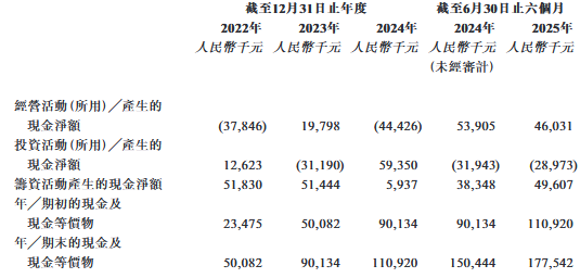 2022年,美联股份经营活动所用的现金净额为人民币37.8百万元;2023年,经营活动产生的现金净额为人民币19.8百万元;2024年,经营活动所用的现金净额为人民币44.4百万元;截至2025年6月30日止六个月,经营活动产生的现金净额为人民币46.0百万元。