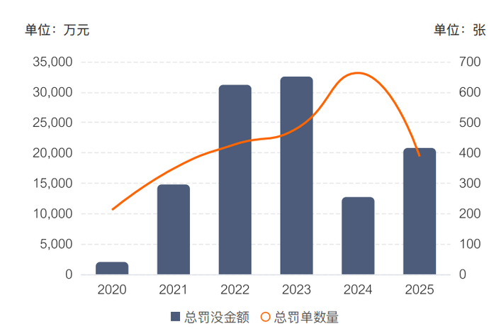 2025年已收官,证券业监管罚单已基本披露。新黄河·大鱼财经梳理发现,从罚单数据来看,总体罚单量同比大幅减少,总罚没金额增加,受罚券商较上年增加1家,基本持平。