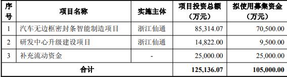 本次向特定对象发行的募集资金总额不超过105,000.00万元(含本数),扣除发行费用后的募集资金净额用于投资汽车无边框密封条智能制造项目、研发中心升级建设项目、补充流动资金。