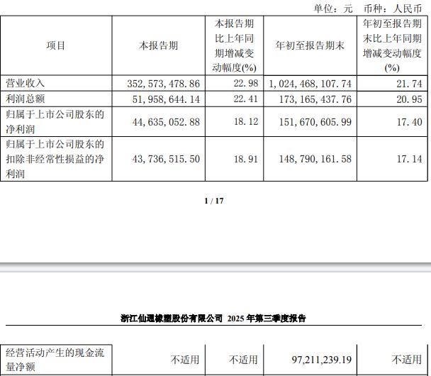 据公司2025年第三季度报告,本报告期,公司实现营业收入3.53亿元,同比增长22.98%;归属于上市公司股东的净利润4463.51万元,同比增长18.12%;归属于上市公司股东的扣除非经常性损益的净利润为4373.65万元,同比增长18.91%。