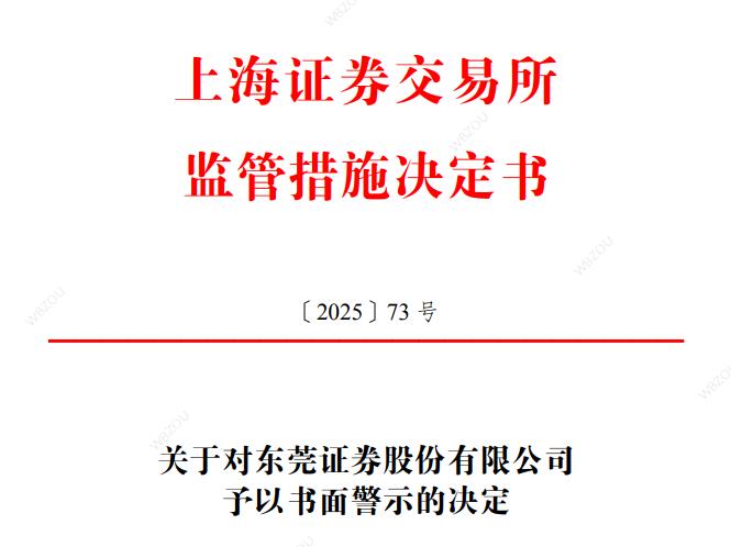 中国经济网北京1月7日讯 上交所于2025年12月31日发布关于对东莞证券股份有限公司予以书面警示的决定。