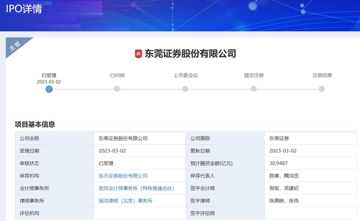 2022年2月24日,东莞证券首发过会。之后,公司于2023年3月向深交所递交IPO平移申请。