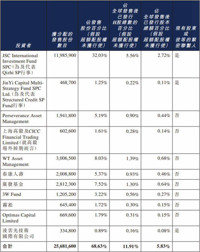 智谱本次发行的基石投资者为JSC International Investment Fund SPC(为及代表Qizhi SP行事)、JinYi Capital Multi Strategy Fund SPC Ltd.(为及代表Structured Credit SP Fund行事)、Perseverance Asset Management、上海高毅及CICC Financial Trading Limited(就高毅场外掉期而言)、WT Asset Management、泰康人寿、广发基金、3W Fund、雾凇、Optimas Capital Limited、凌云光技术国际有限公司。