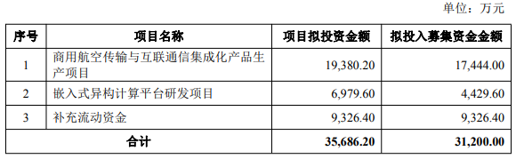 中国经济网北京1月9日讯 全信股份(300447.SZ)昨晚披露的向不特定对象发行可转换公司债券预案显示,本次发行拟募集资金总额不超过31,200.00万元(含本数),扣除发行费用后的募集资金净额将全部用于以下项目:商用航空传输与互联通信集成化产品生产项目、嵌入式异构计算平台研发项目和补充流动资金。