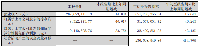 2025年前三季度,全信股份营业收入为6.52亿元,同比下降16.64%;归属于上市公司股东的净利润0.32亿元,同比下降46.24%。