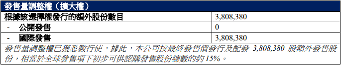最终发售价及配发结果公告显示,MINIMAX全球发售的发售股份数目为29,197,600股发售股份(经计及发售量调整权获悉数行使及视乎超额配股权行使与否而定),其中,香港发售股份数目为5,077,860股发售股份(可经重新分配后调整),国际发售股份数目为24,119,740股发售股份(经计及发售量调整权获悉数行使,可经重新分配后调整及视乎超额配股权获行使与否而定)。发售量调整权已获悉数行使,据此,公司按最终发售价发行及配发3,808,380股额外发售股份,相当于全球发售项下初步可供认购发售股份总数的约15%。