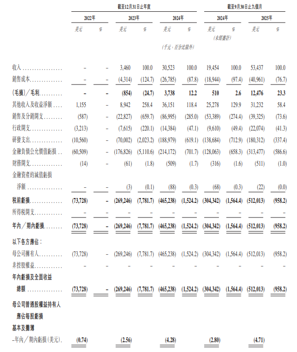 2023年、2024年以及2025年1-9月,MINIMAX的收入分别为3.5百万美元、30.5百万美元、53.4百万美元。