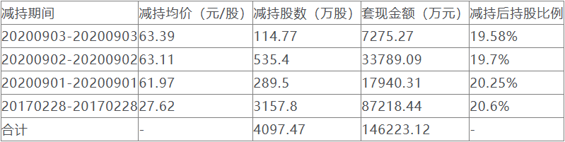 据新浪财经,数据显示,彭浩最初持股2.29亿股,占总股本的23.88%。彭浩从2017年2月28日起,第一次减持信维通信股份,迄今为止,累计减持公司股票4097.47万股,累计套现约14.62亿元。