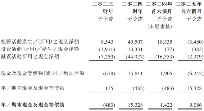 于2023财年、2024财年及2025年首六个月,BBSB INTL的经营活动产生之现金净额分别为8.5百万令吉、49.5百万令吉及-3.5百万令吉。