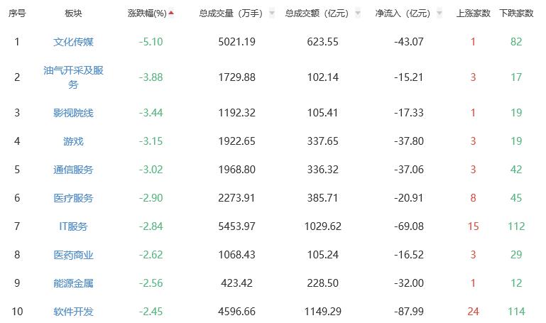 板块方面,半导体、自动化设备、工程机械等涨幅居前,文化传媒、油气开采及服务、影视院线等跌幅居前。