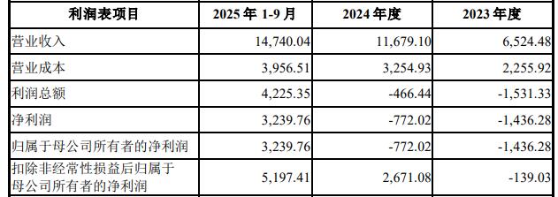 标的公司为准智能2023年、2024年、2025年1-9月实现营业收入分别为6,524.48万元、11,679.10万元、14,740.04万元;归属于母公司所有者的净利润分别为-1,436.28万元、-772.02万元、3,239.76万元;扣除非经常性损益后归属于母公司所有者的净利润-139.03万元、2,671.08万元、5,197.41万元。