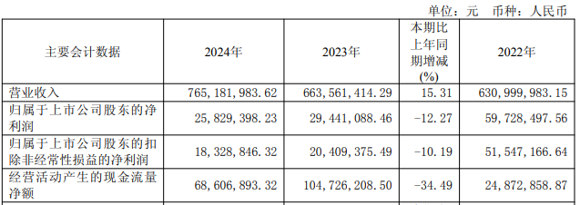 浙海德曼净利和扣非净利均连降3年。2021年度至2024年度及2025年前三季度,浙海德曼营业收入分别为5.41亿元、6.31亿元、6.64亿元、7.65亿元、6.08亿元,归属于上市公司股东的净利润分别为0.73亿元、0.60亿元、0.29亿元、0.26亿元、0.31亿元,归属于上市公司股东的扣除非经常性损益的净利润分别为0.63亿元、0.52亿元、0.20亿元、0.18亿元、0.27亿元。