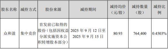 公司2025年9月16日披露关于控股股东、实际控制人及其一致行动人权益变动触及1%整数倍暨减持计划实施完毕的公告,公司于2025年8月21日披露了《关于股东股份减持计划的预披露公告》,公司股东三河众和盈企业管理中心(有限合伙)(简称“众和盈”,众和盈系公司控股股东、实际控制人之一致行动人)拟自减持计划公告披露之日起15个交易日后3个月内通过集中竞价减持公司股份不超过764,400股(占公司总股本比例0.4503%)。公司于近日收到众和盈出具的告知函,众和盈于2025年9月12日至2025年9月15日通过集中竞价方式共减持公司股份764,400股,占公司总股本的0.4503%。截至公告披露日,众和盈本次减持计划已实施完毕。经计算,众和盈共计减持套现61862892元,加之上述询价转让金额,实控人方共计套现394549384元。