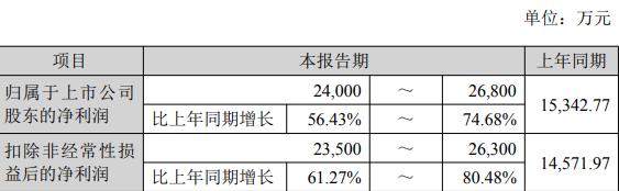 据公司2025年业绩预告,归属于上市公司股东的净利润预计为24,000万元至26,800万元,比上年同期增长56.43%至74.68%;扣除非经常性损益后的净利润预计为23,500万元至26,300万元,比上年同期增长61.27%至80.48%。本次业绩预告是公司财务部门初步测算的结果,未经会计师事务所审计。