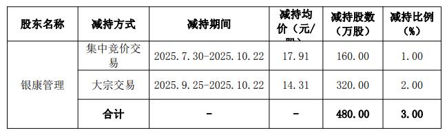 银康管理2025年合计减持套现金额为1.05亿元。