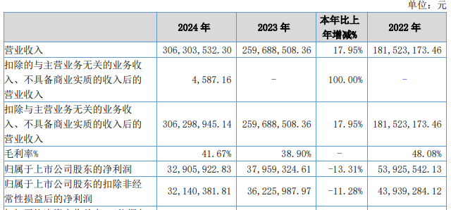 江丰电子预计2025年归属于上市公司股东的净利润为43,060.00万元至51,070.00万元,同比增长7.50%至27.50%;扣除非经常性损益后的净利润30,460.00万元至38,470.00万元,同比增长0.36%至26.75%。