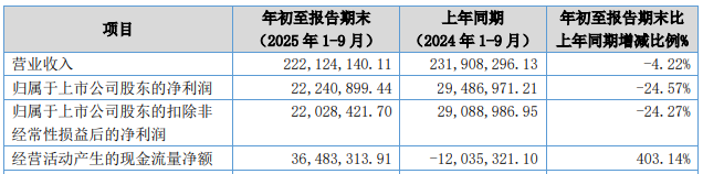 2025年前三季度,凯德石英归属于上市公司股东的净利润0.22亿元,同比下降24.57%。