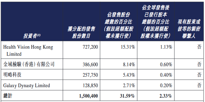卓正医疗的基石投资者包括Health Vision Hong Kong Limited、金域检验(香港)有限公司、明略科技、Galaxy Dynasty Limited。
